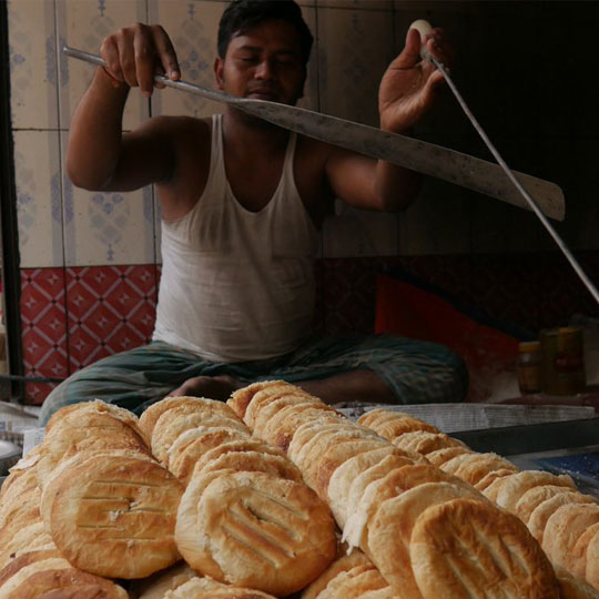 Let’s take Rumali bread, or Muskmelon pudding. Well, forget them, let’s take Bakharkhani; this is the final. Bakharkhani is a typically defined old-town ‘tradition’ in Dhaka. Of course, you have to hold it with a very soft delicate hand. You can say many things about the “tradition” of “Old Dhaka”. However, it is best not to discuss these while you are having a Bakharkhani. It is so very delicate thing that if you continue your conversation, the half-chewed buckwheat may become dusty and fall on the face of your loved ones or even boss.